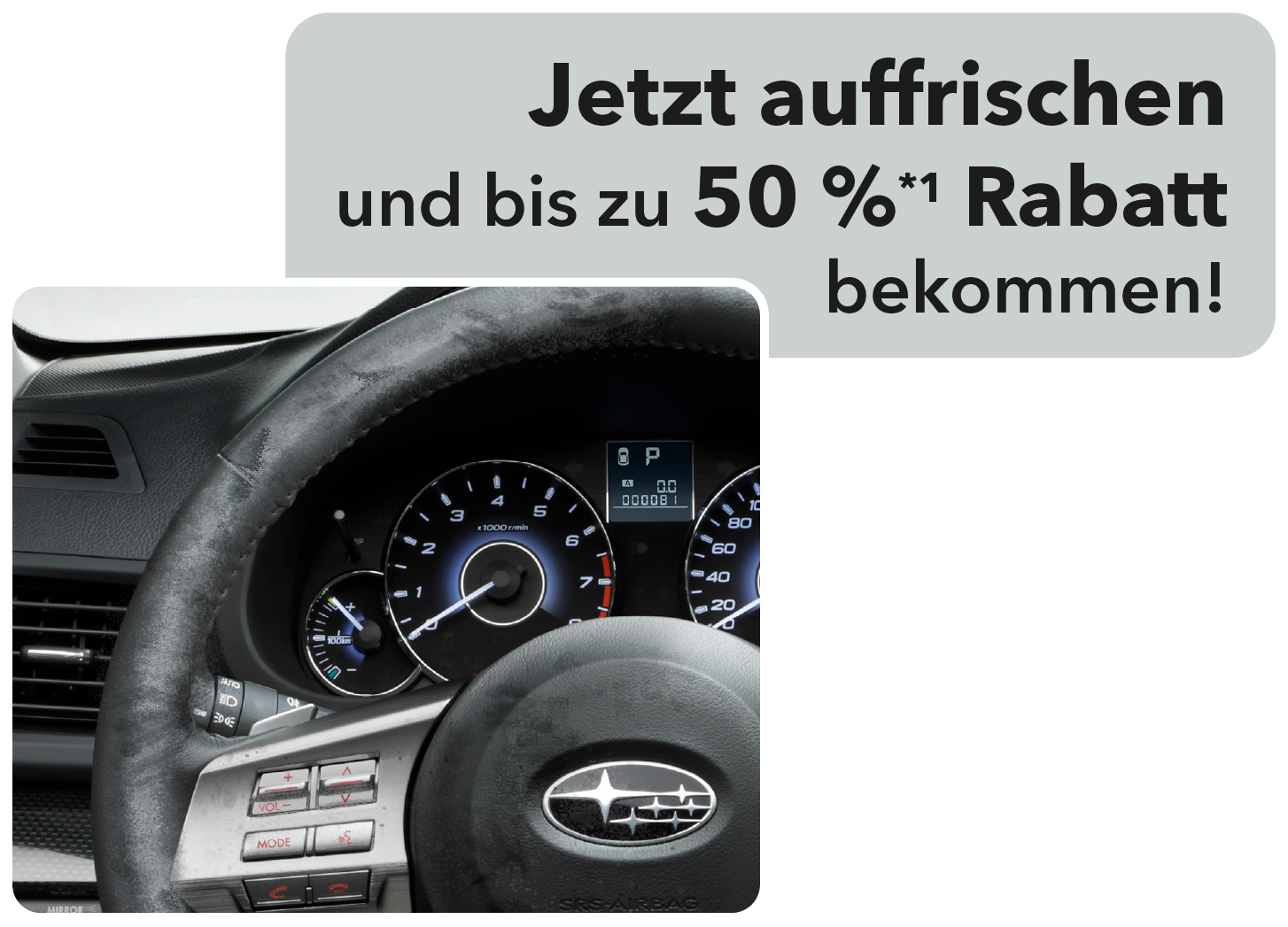 1Preisvorteil gegenüber der UPE des Importeurs. Sie sparen bis zu 50 % auf ausgewählte Komponenten, Detailinformationen erhalten Sie von Ihrem Subaru Partner.